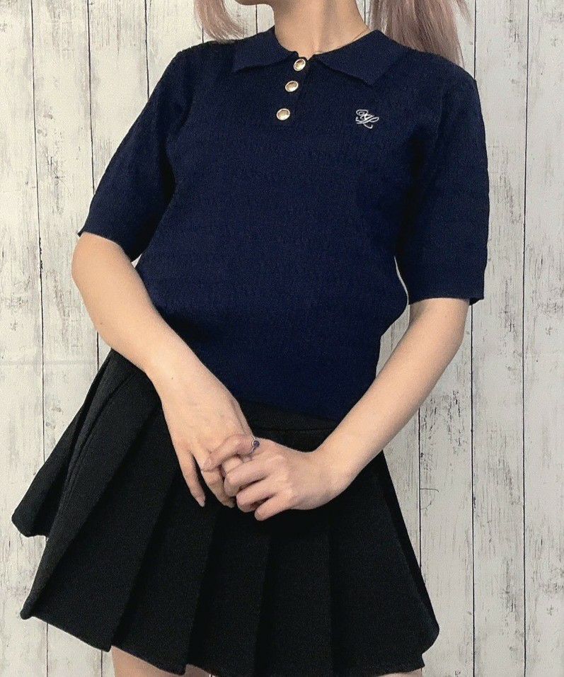 エリツキ刺繍半袖ニットプルオーバー
