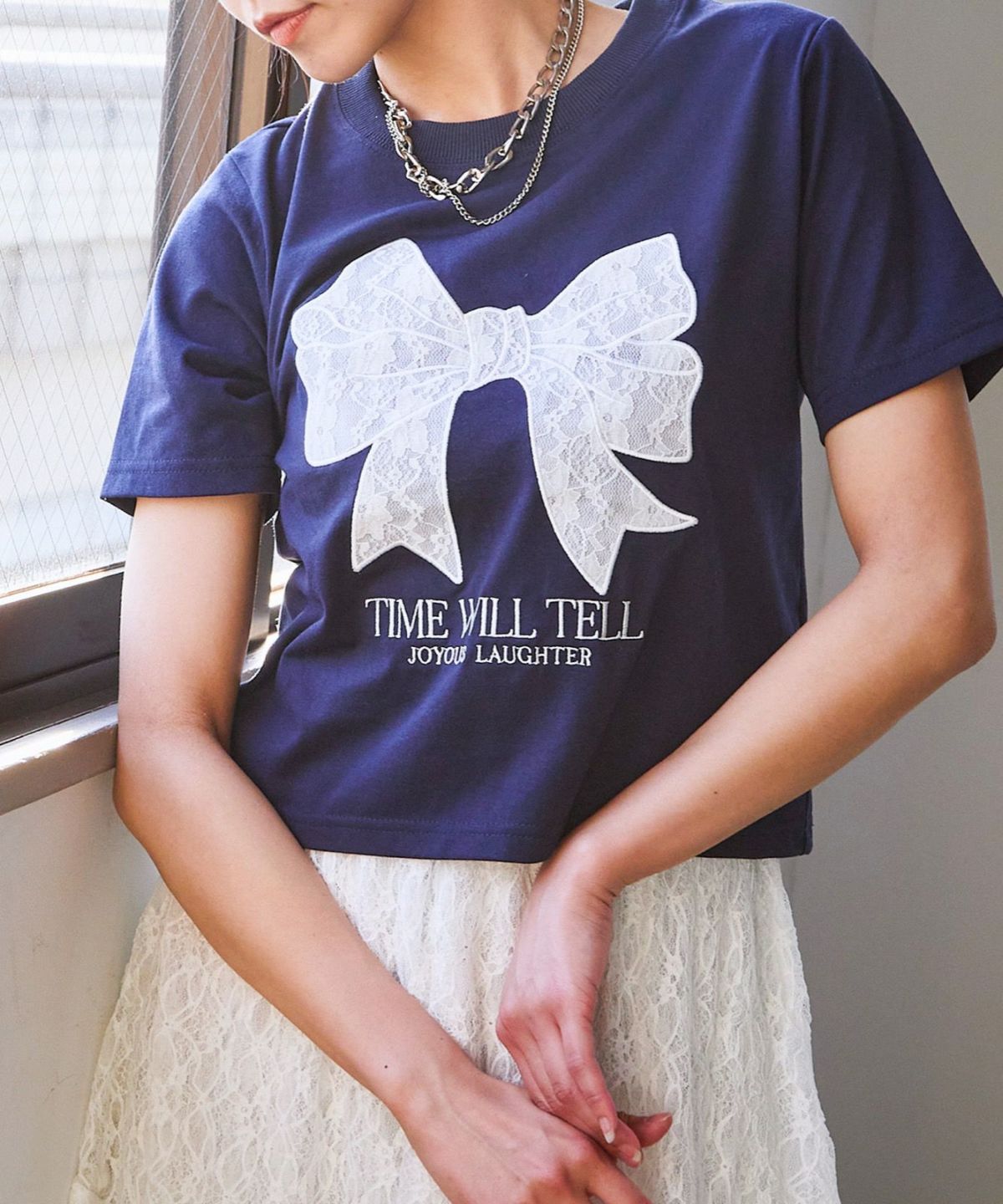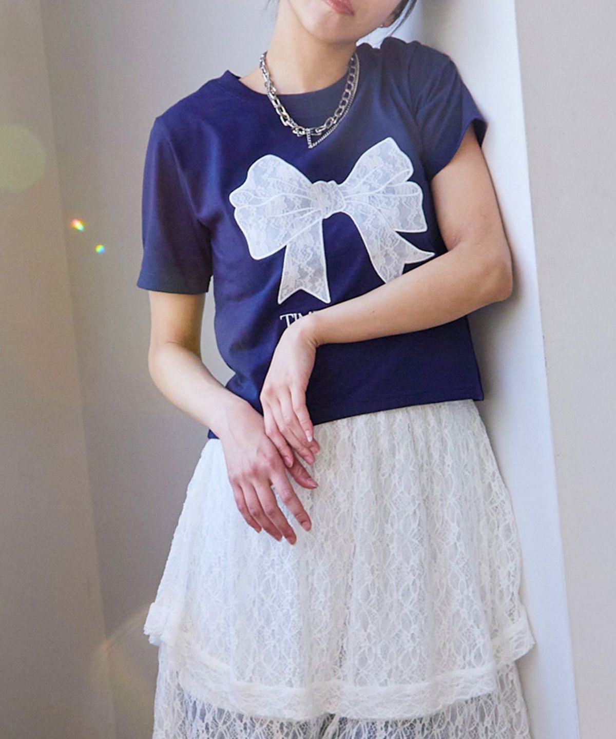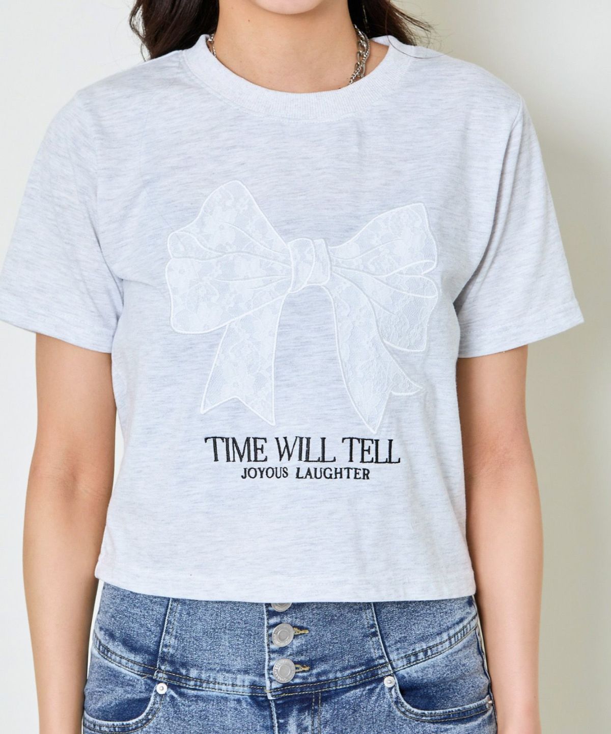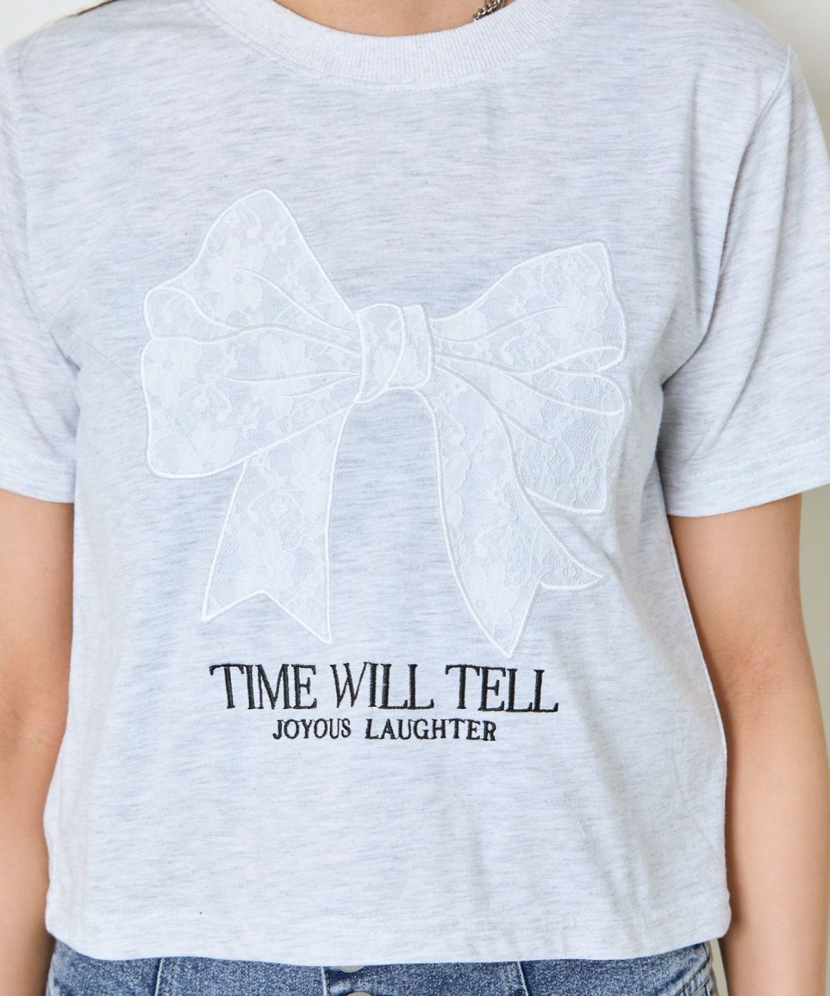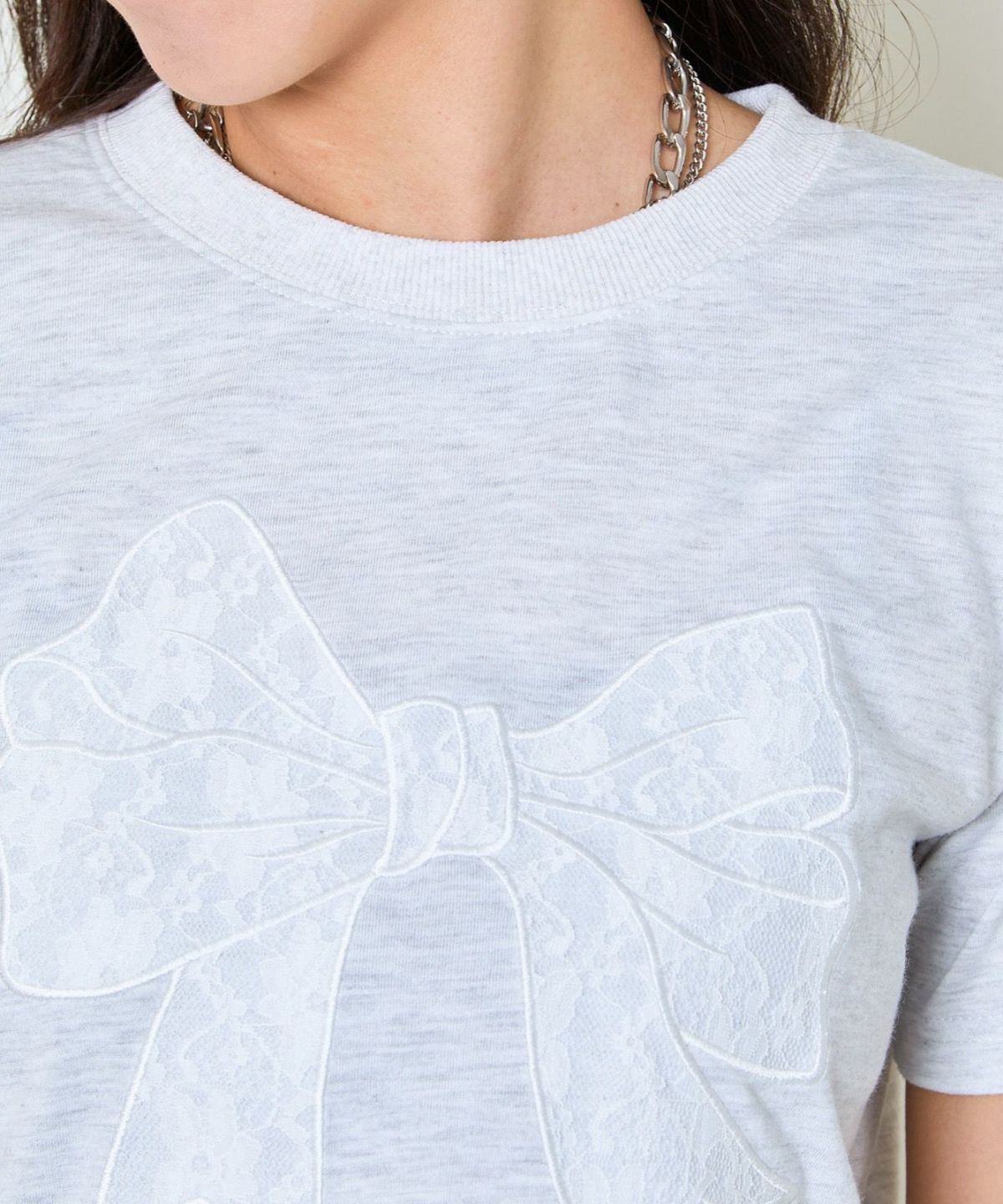 レースリボン短丈Tシャツ