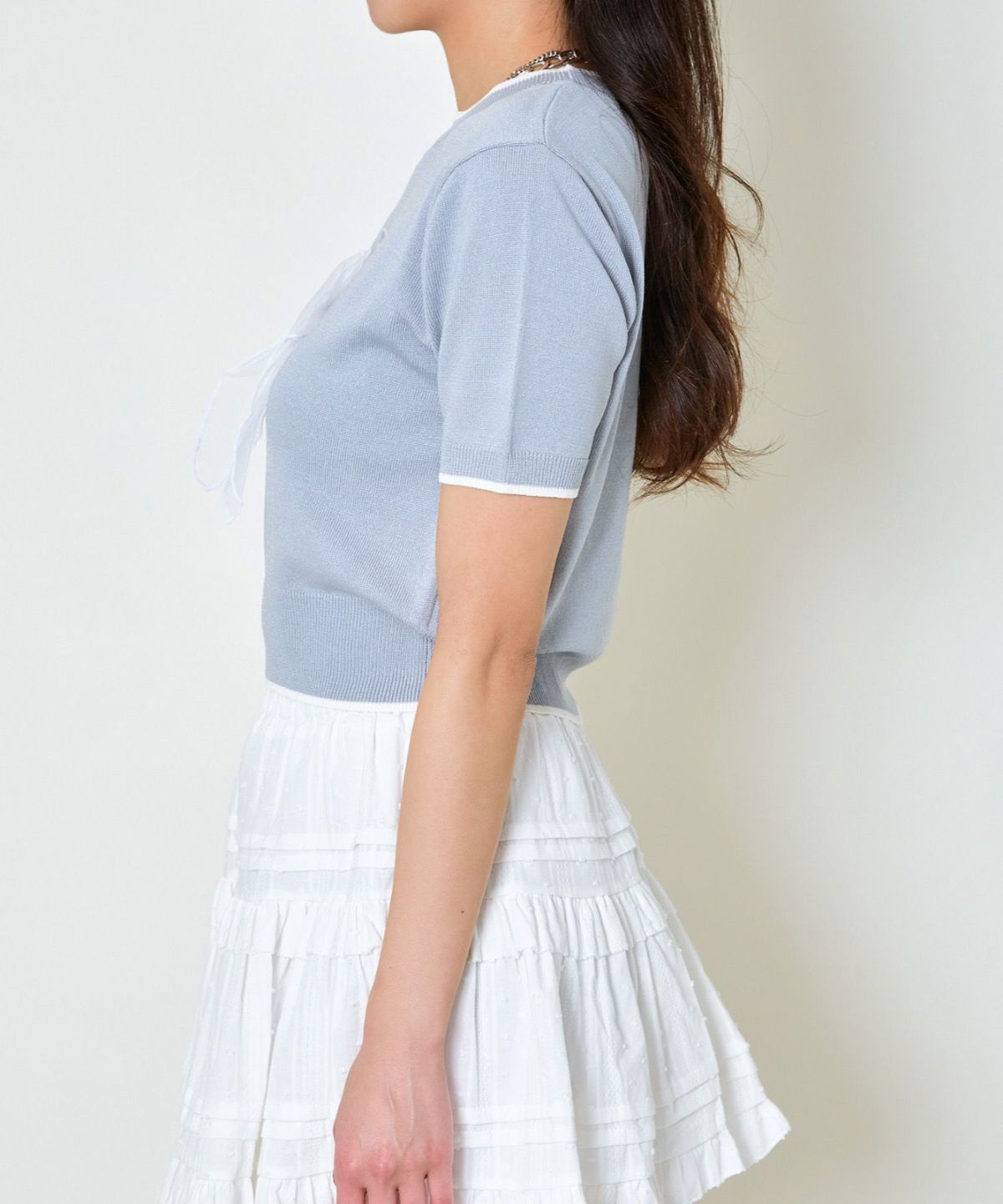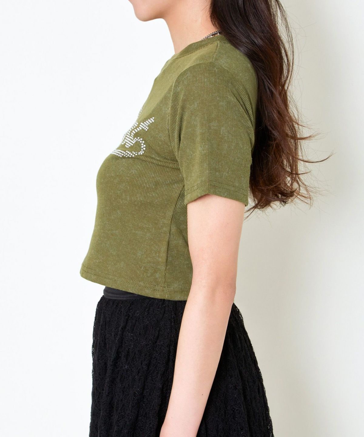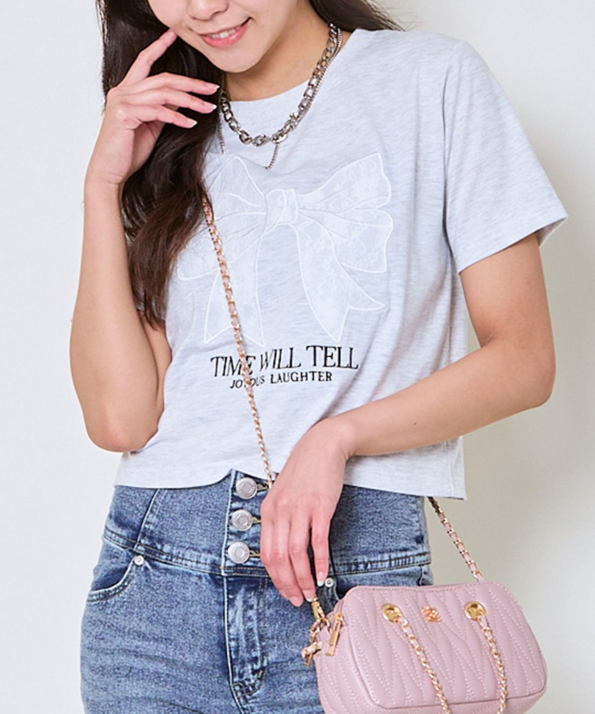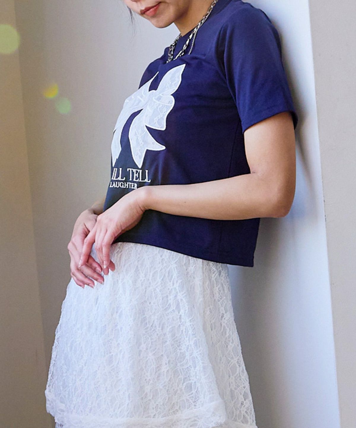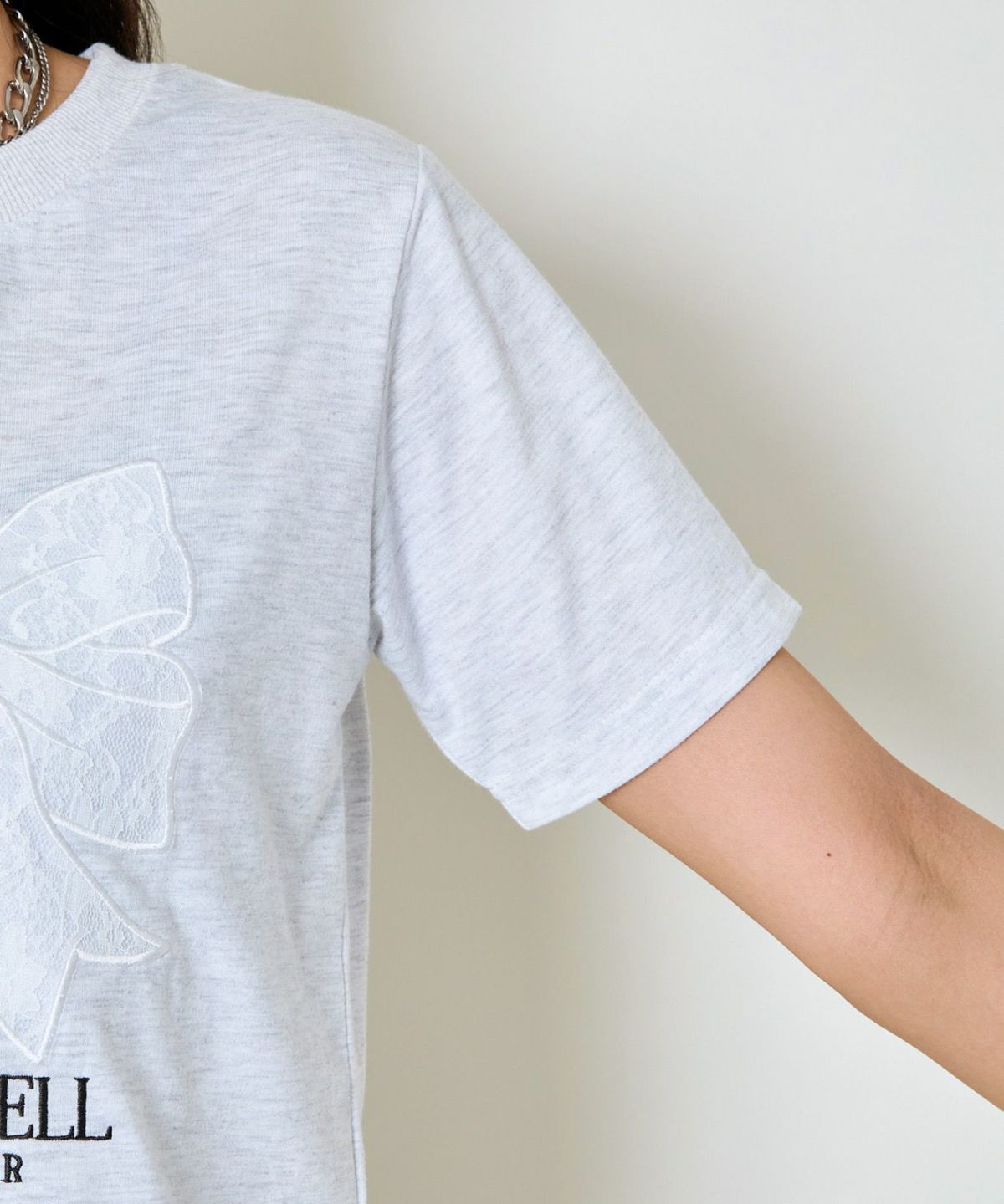 レースリボン短丈Tシャツ