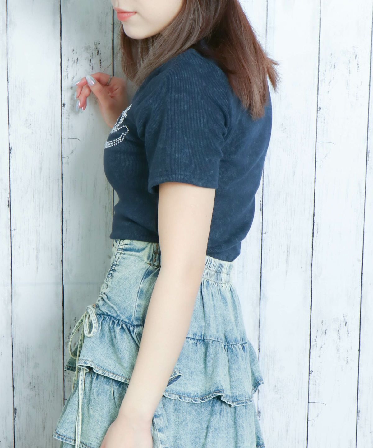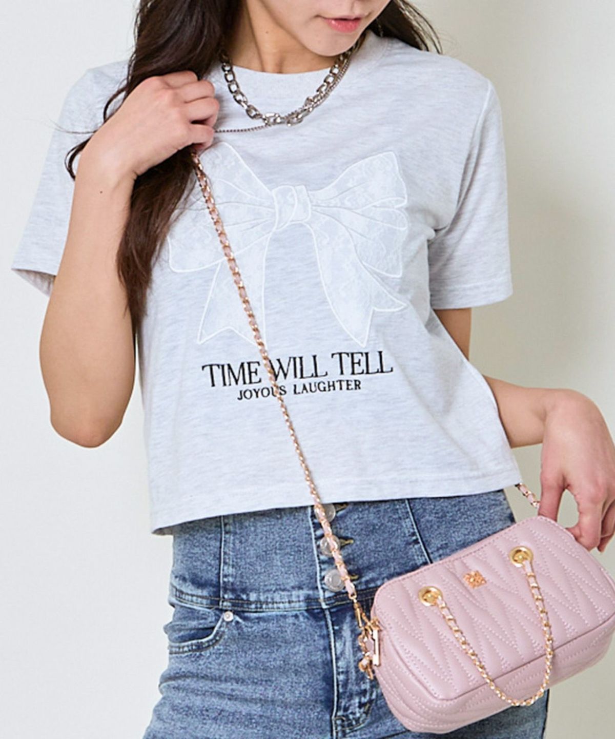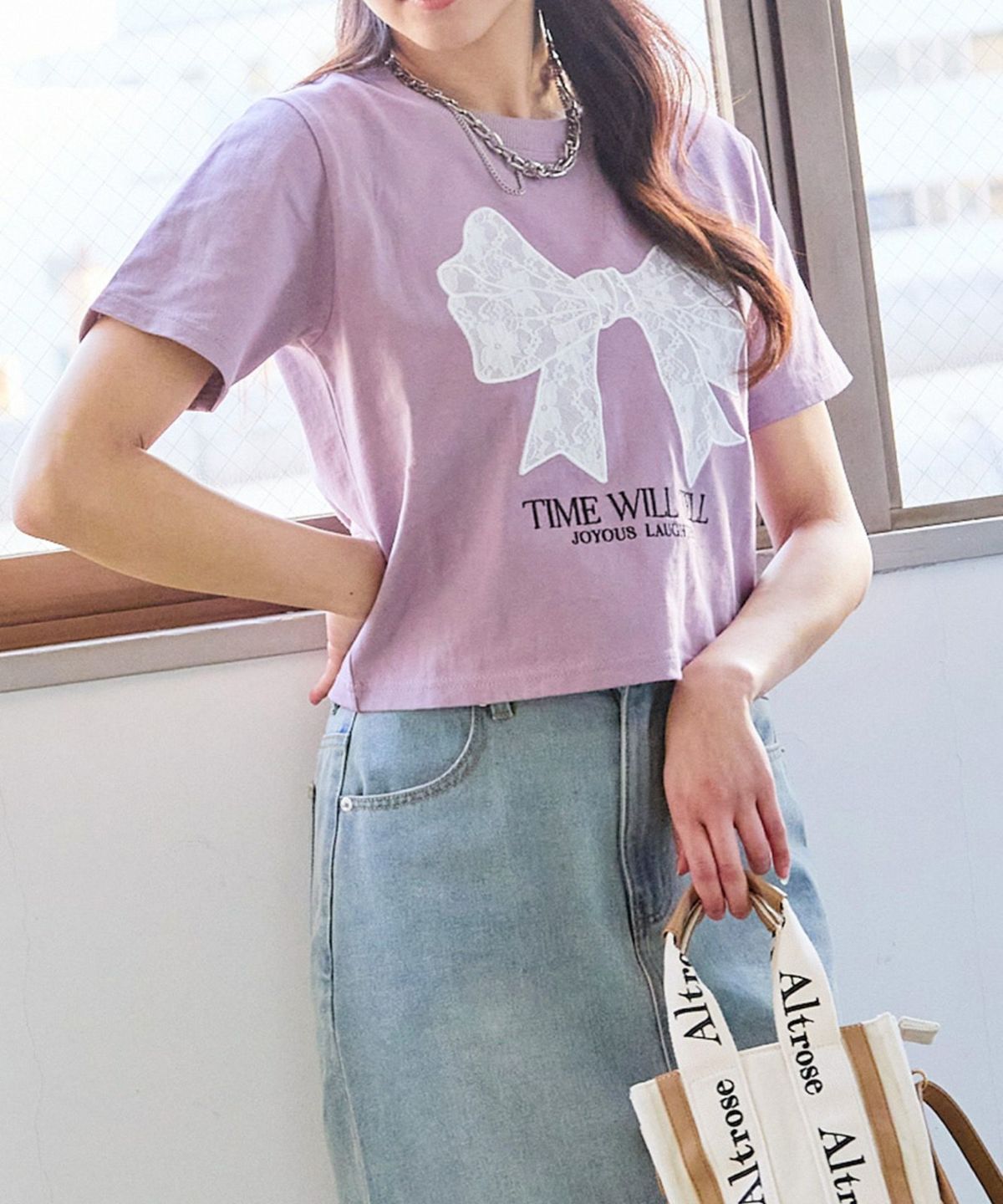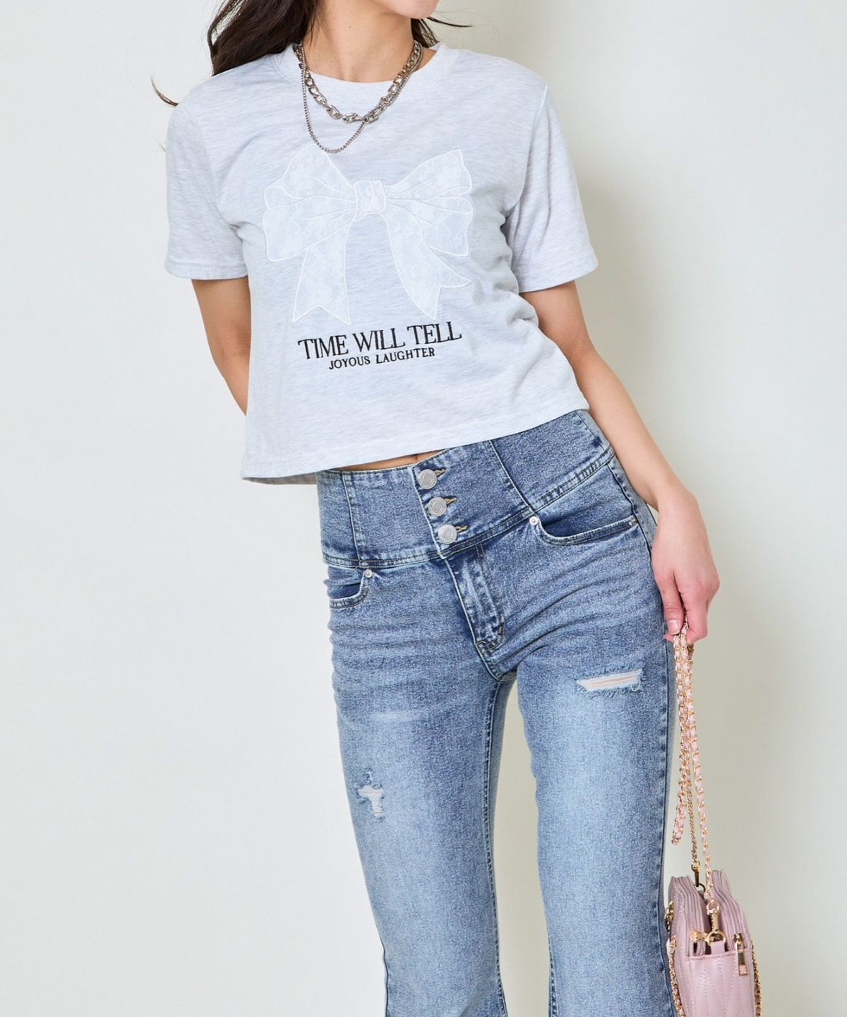 レースリボン短丈Tシャツ