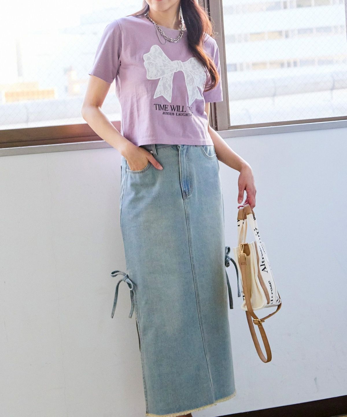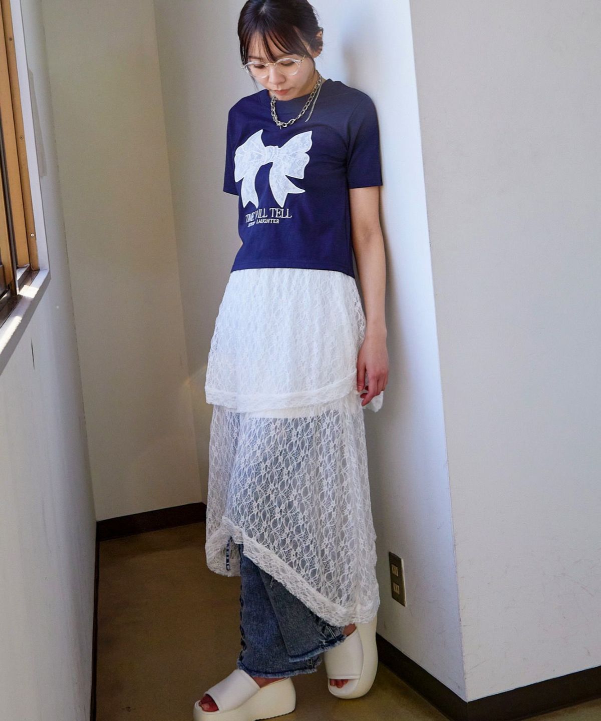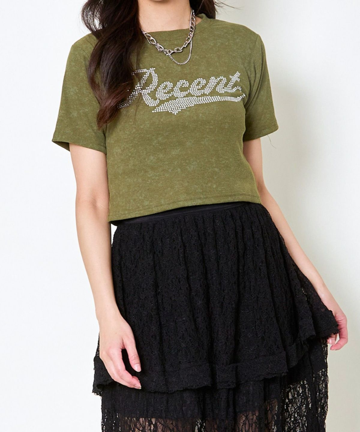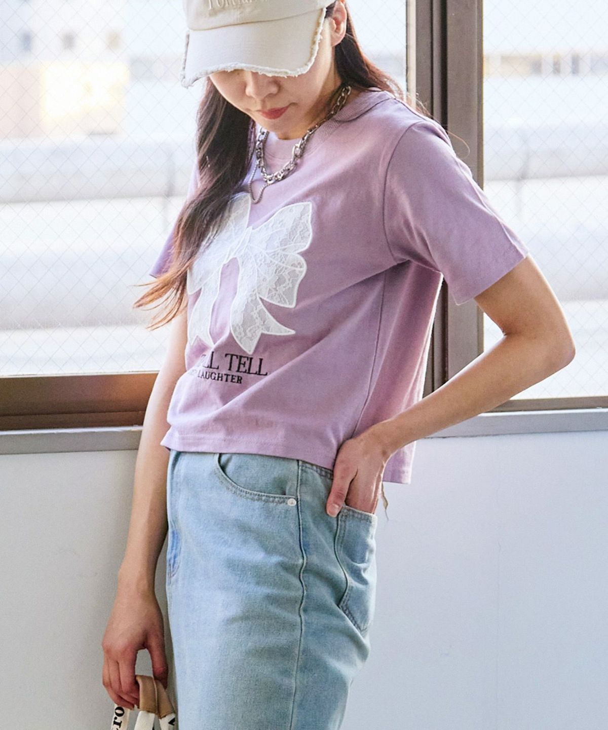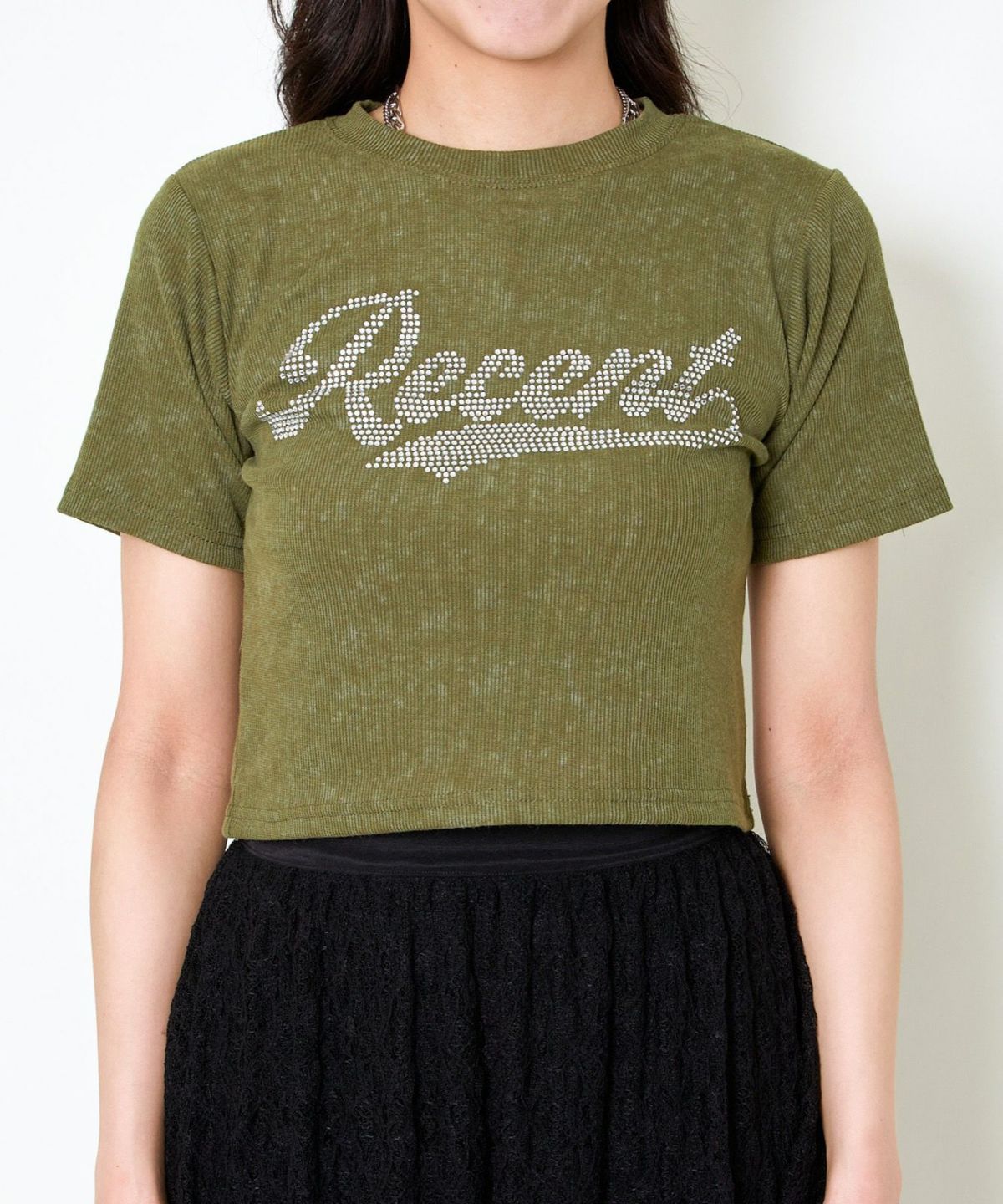 レースリボン短丈Tシャツ