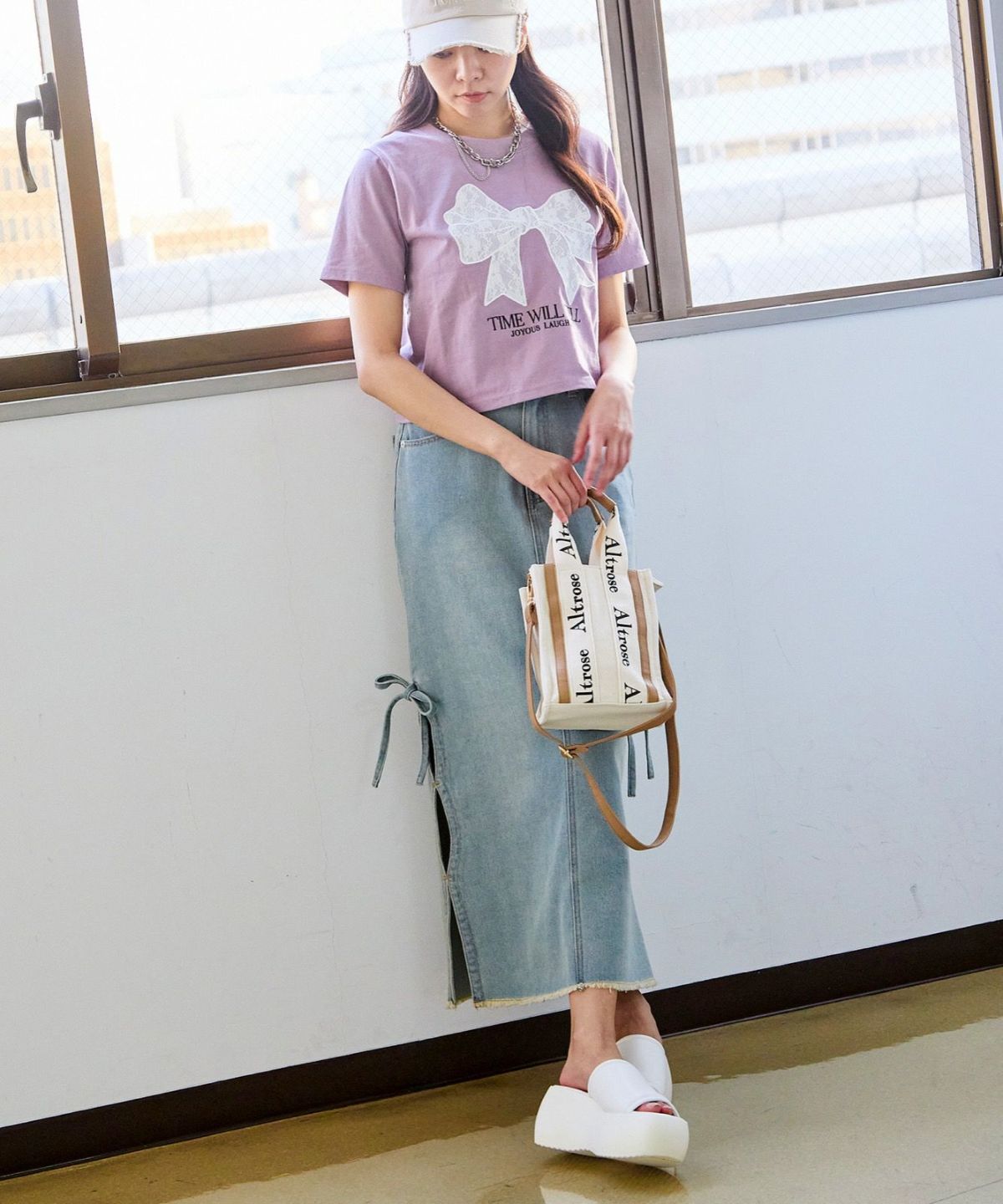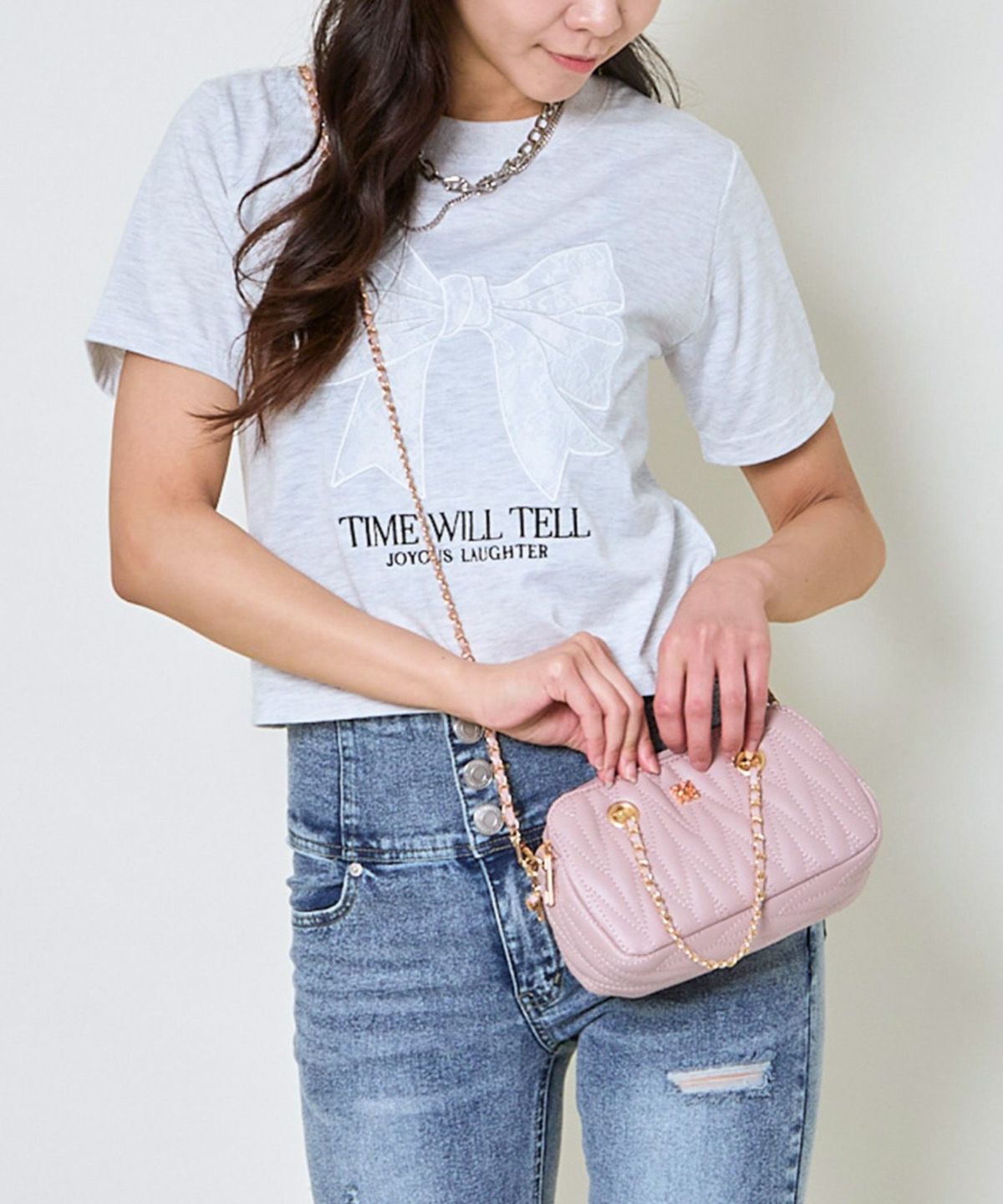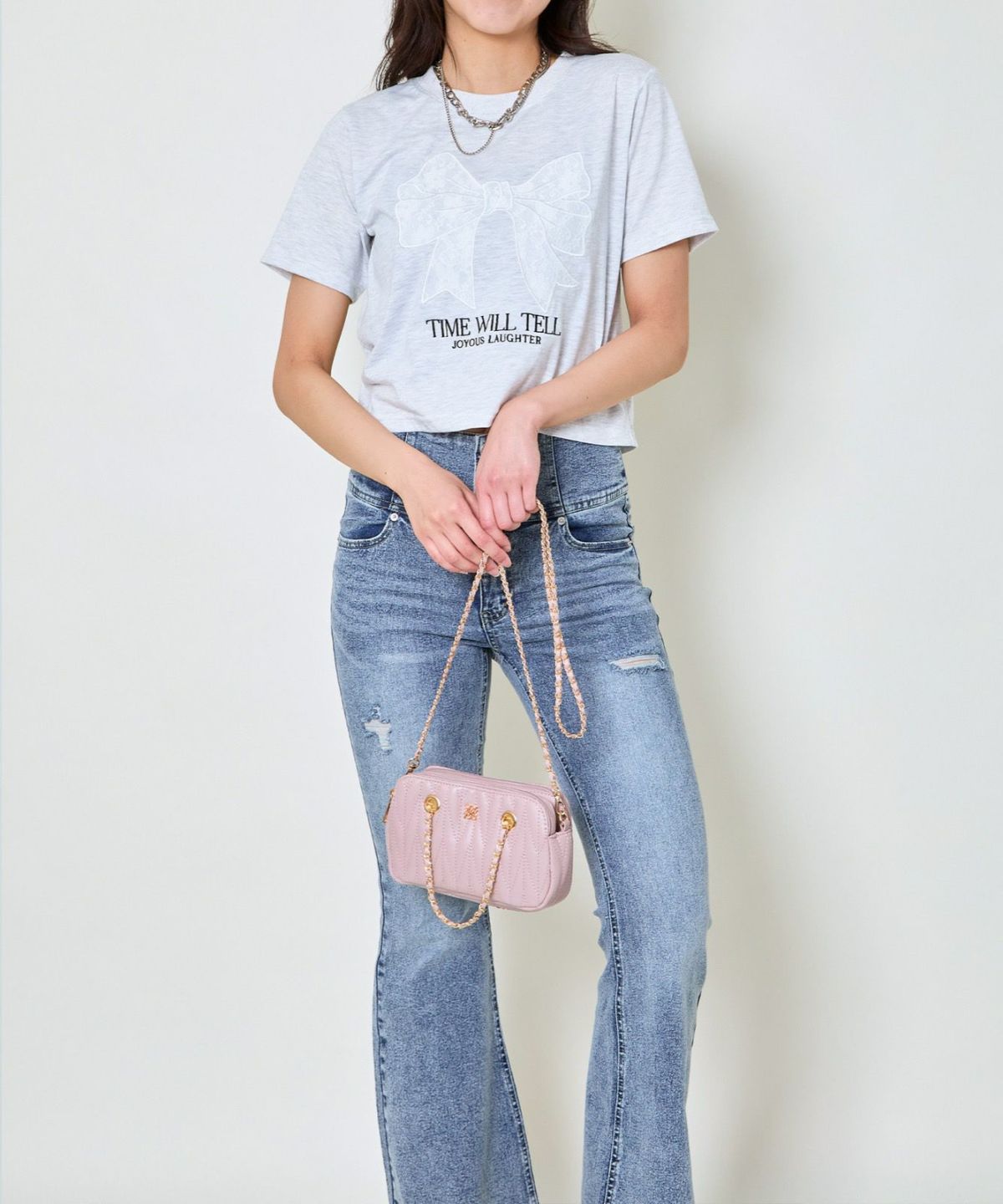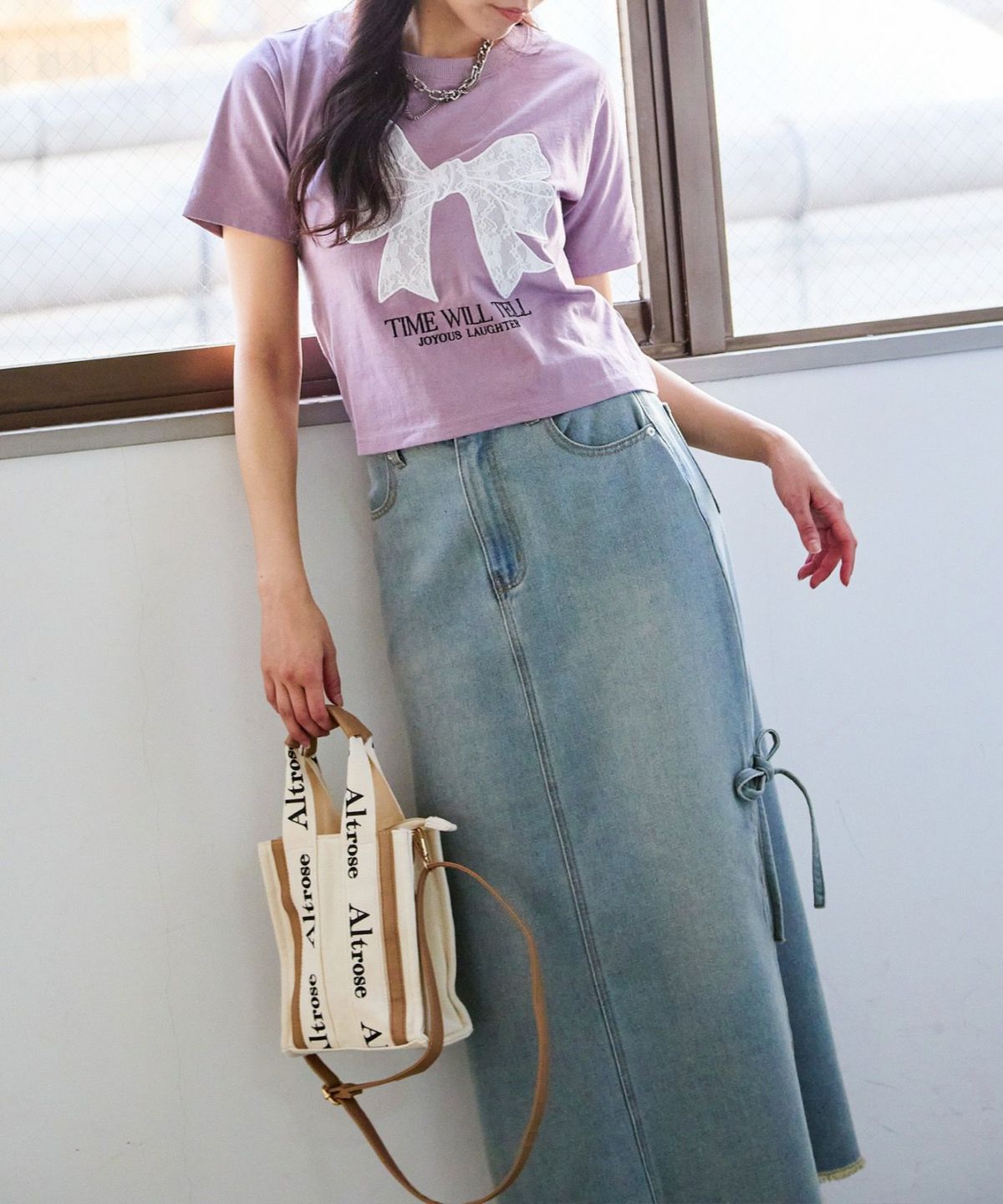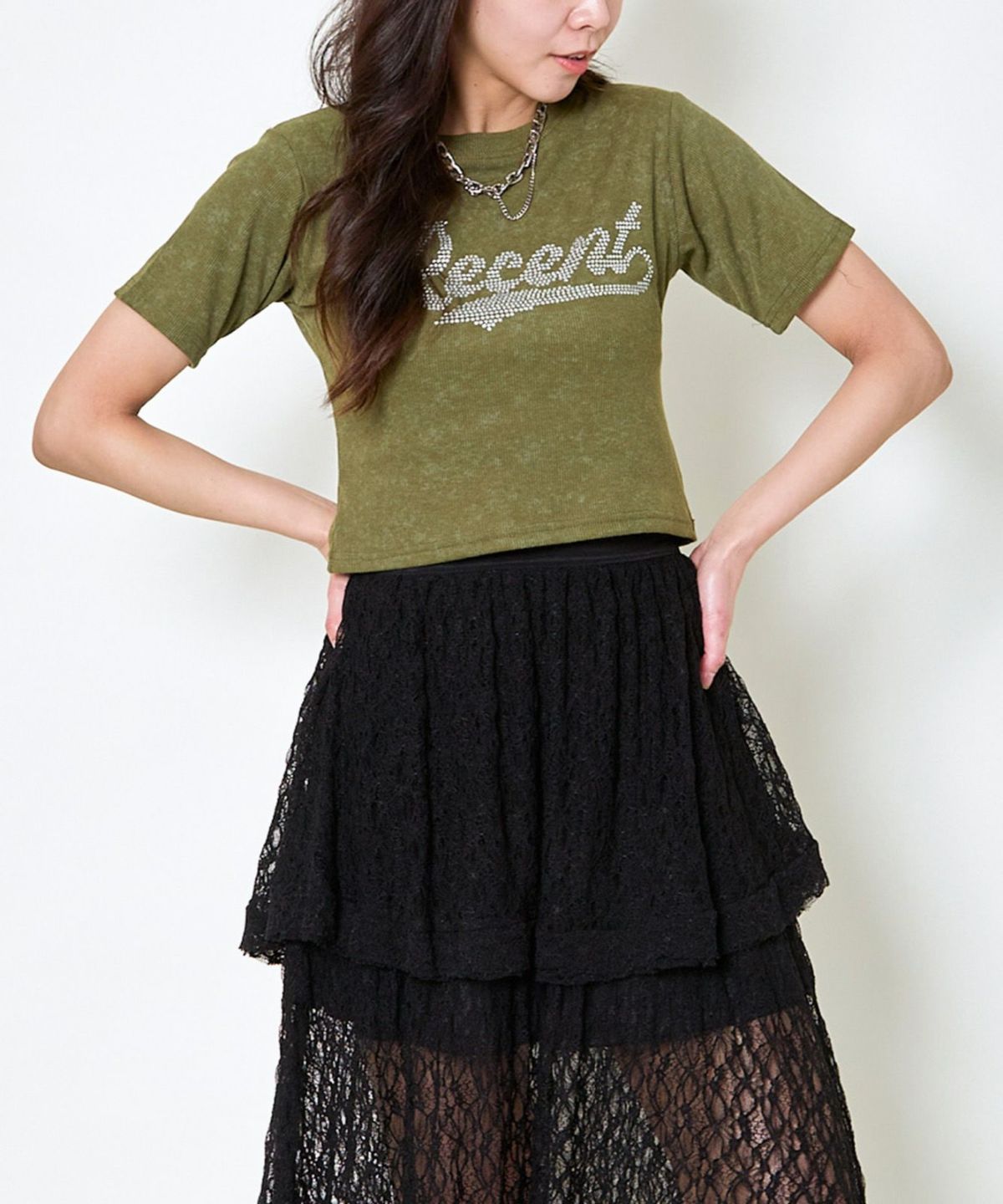 レースリボン短丈Tシャツ