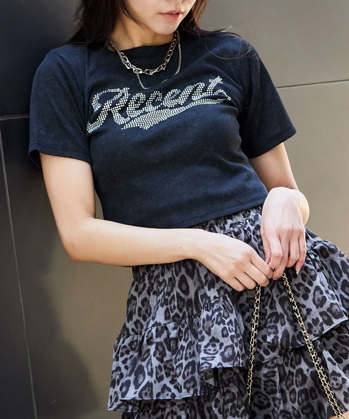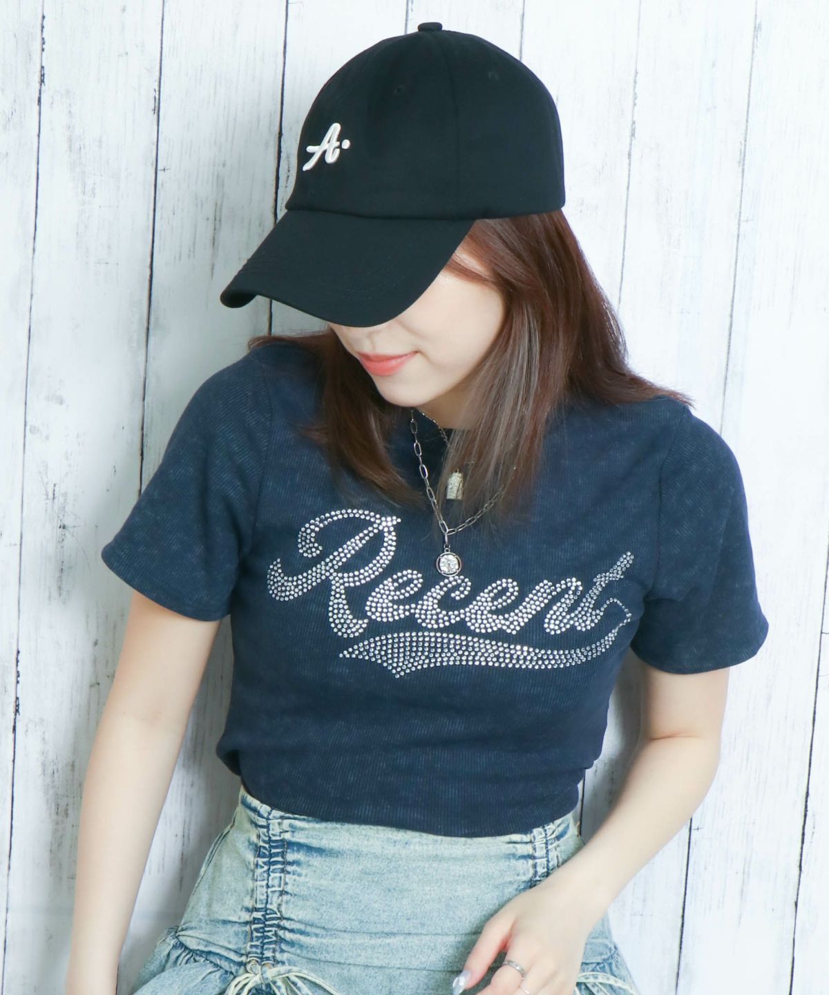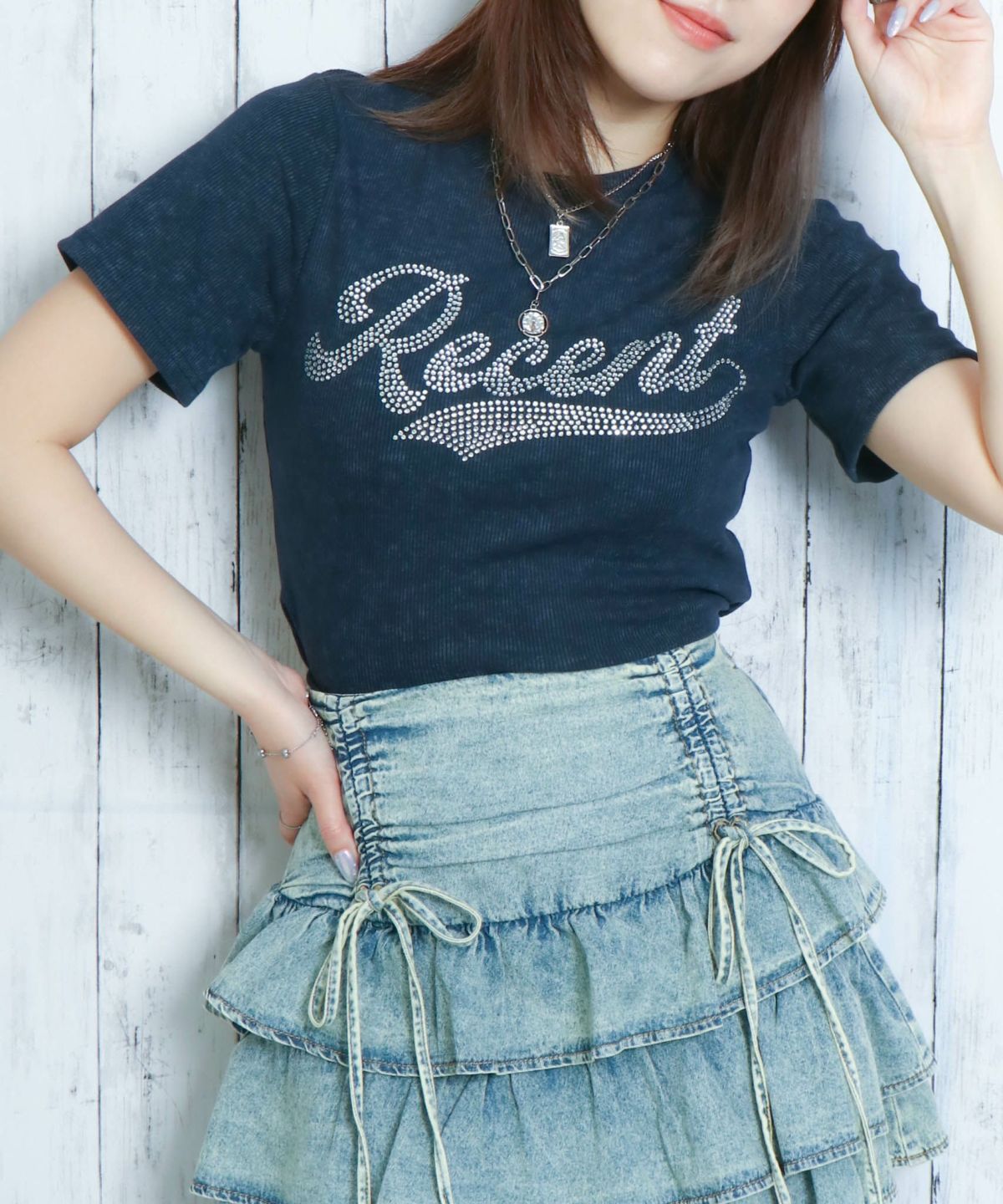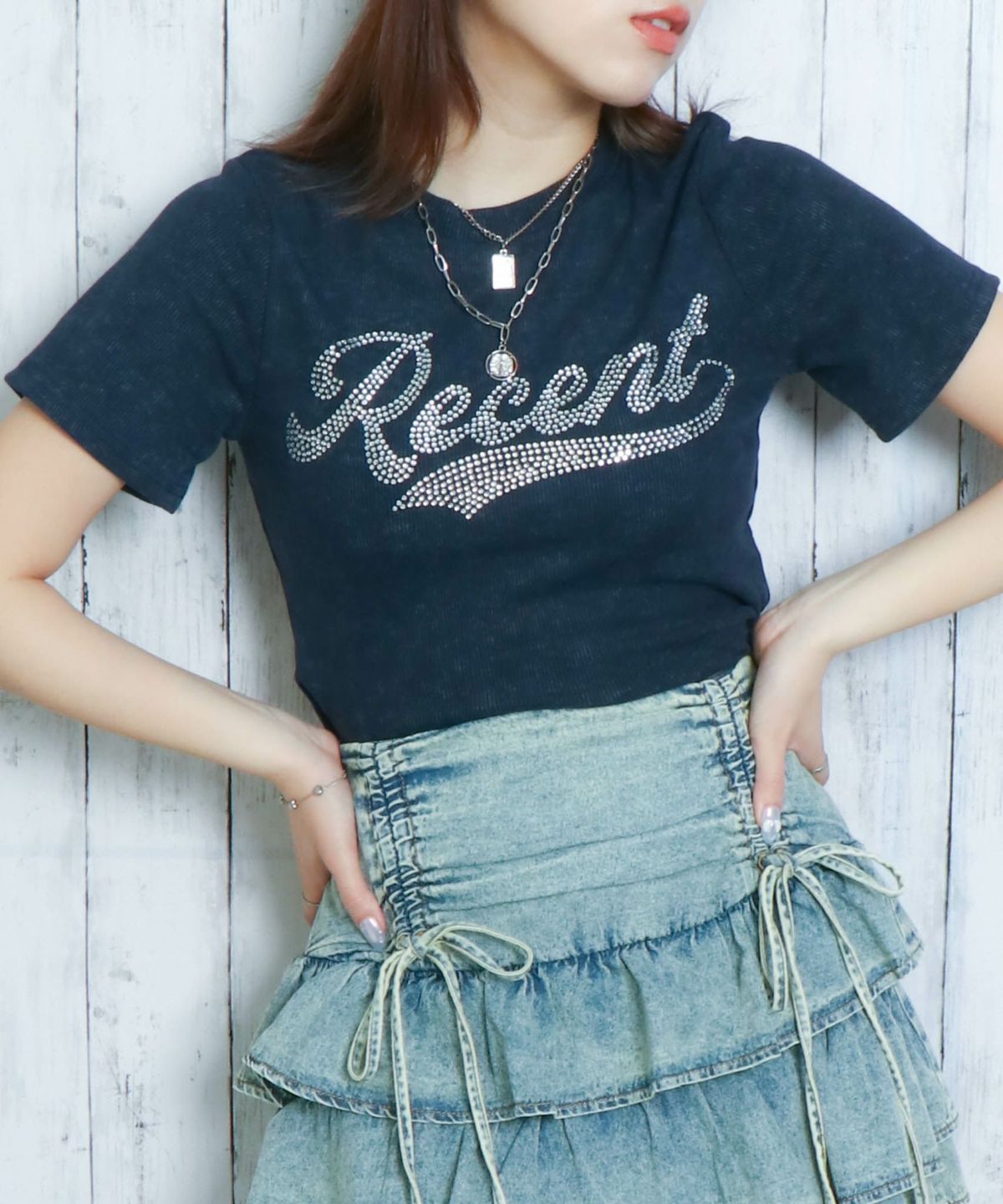 《きらロゴ×短丈》ラインストーンTシャツ/Y2Kストリート