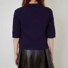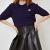 女性らしさを引き立てる半袖襟付き刺しゅうニットプルオーバー