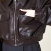 胸元のフラップ付きポケットがデザインのアクセントになり、実用性も兼ね備えています。