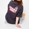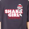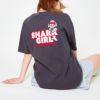 「SharkGirl」というキャラクターのインパクトが強く、ファッションのアクセントとしても優れています。ポップでありながらもストリートテイストを感じさせるデザインは、カジュアルなコーディネートにぴったり!