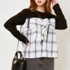 異素材ドッキングデザインで、1枚で重ね着風のスタイリングが叶います。フロントのリボンが華やかさをプラスし、女性らしさを引き立てるポイントに。程よいゆとりのあるシルエットで、こなれ感を演出してくれる優秀トップスです♪