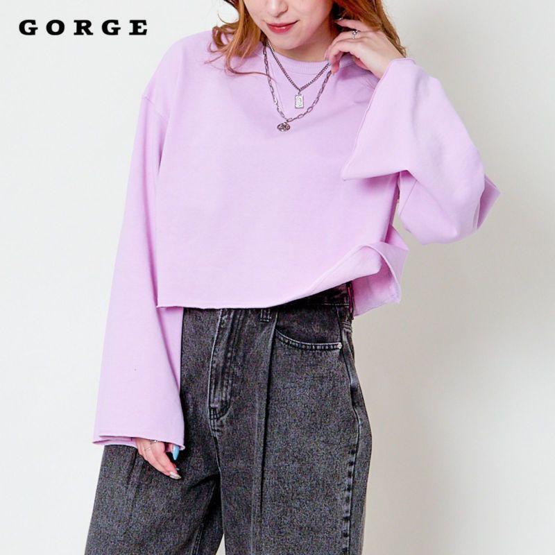 カットオフデザイン×フレアスリーブが特徴のショート丈トップス。ロンT感覚でスタイリングできるライトな着心地のスウェット素材。スタイルアップ効果も期待できるショート丈に抜け感たっぷりのワイドシルエットが、シンプルで様々なコーデに重宝します。カラバリ豊富な6色展開♪イロチ買いもオススメ。