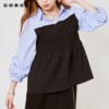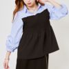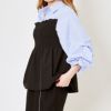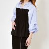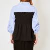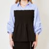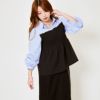 ストライプ柄と異素材の組み合わせが目を引くドッキングシャツ。トレンド感のあるデザインで、一枚でこなれた着こなしが完成♪