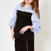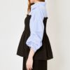 ストライプ柄が爽やかな印象を与えつつ、異素材ドッキングがアクセントに。ゆったりとしたシルエットでラフに着こなせるのも魅力◎