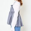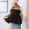 胸元や肩周りにフリルが施されたデザインは、顔まわりを華やかに見せる効果があり、シンプルなボトムスと合わせても存在感のあるスタイリングが楽しめます◎