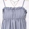 キャミソールの軽やかなシルエットにフリルの甘さが加わることで、女性らしさを引き立てながら、シンプルになりすぎない華やかさをプラスしてくれます。