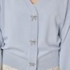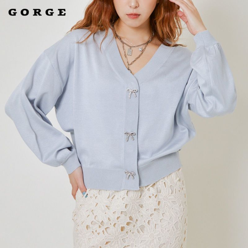 リボンデザインのボタンがアクセントになったカーディガン。シンプルな中に女性らしいディテールが光る、デイリー使いにぴったりな一着です◎