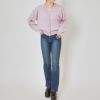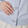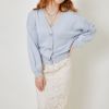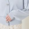 フロントボタンにリボンモチーフをあしらい、さりげなく可愛らしさをプラス。程よくゆったりとしたシルエットで、どんなスタイリングにも合わせやすい万能デザインです。