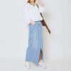 デニムやワイドパンツと合わせれば、シンプルながらもおしゃれなカジュアルコーデに。スカートと組み合わせることで、カジュアルだけど女性らしい雰囲気も演出できます♪