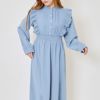 フロントに施されたピンタックが縦のラインを強調し、スタイルアップ効果も期待できるデザイン。フリルが可愛らしいアクセントを加えつつ、甘くなりすぎない上品なシルエットに仕上げました。ゆったりとしたシルエットで着心地も抜群◎