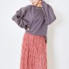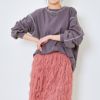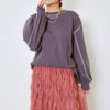 シンプルなロンTに施されたステッチが、さりげなくも印象的。袖口や裾のステッチがデザインのポイントとなり、無地でもこだわりを感じさせる一着です。
