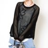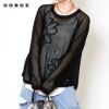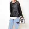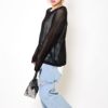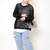 透け感のあるメッシュ素材にフラワーモチーフを施したデザインが特徴で、さりげなく肌を見せることで抜け感のあるスタイルを演出できます。インナー次第でさまざまな表情を楽しめるアイテムです。