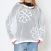繊細な透かし編みのデザインが特徴的な、フェミニンで上品な印象のアイテムです。軽やかな素材感と華やかなフラワーモチーフが絶妙にマッチし、女性らしさを引き立てるデザインが魅力的です◎