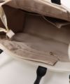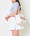 キャンバス生地と合皮のディテールが高見えポイント。中央にあしらわれた立体的なリボンが、シンプルながらも華やかさをプラスしてくれます♪ ロゴチャームも上品なきらめきを添えて、洗練された印象に。