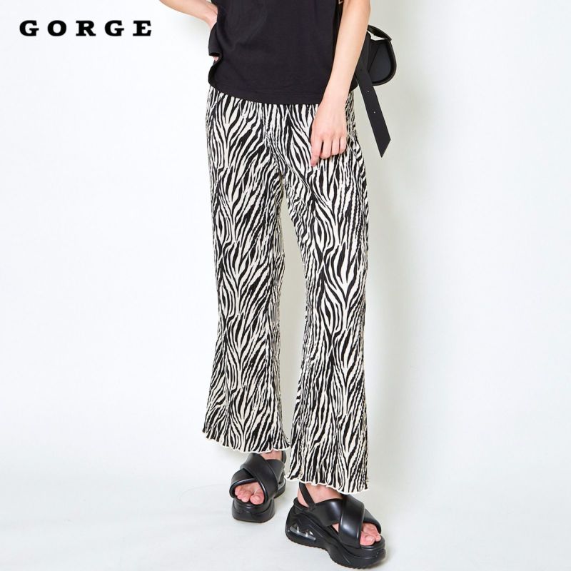 動きのあるシルエットが魅力!柄プリーツパンツ