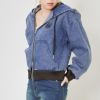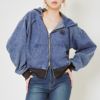 デニム素材ならではのヴィンテージ感が魅力のフード付きWzipブルゾン。ポイントはバッグの擦れプリント!コーデにこなれ感をプラスしてくれます。コンパクトな丈感でスタイルアップ効果も期待でき、ワイドシルエットのボトムス合わせがバランス良くオススメ♪ロングシーズンでデイリーに活躍してくれる一着。