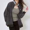 トラックジャケットのデザインを落とし込んだデニム素材ブルゾン。リブのラインと袖ラインが施されたスポーティーなルックスに、デニム素材がストリート感ある雰囲気を演出♪BIGシルエットで気になるウエスト周りもしっかりカバー◎ジョガーパンツやカーゴパンツと合わせたスケーターファッションや、ミニスカートと合わせて韓国っぽコーデにも☆