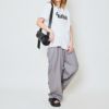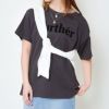 デニムやスカートと合わせるだけで、カジュアルでおしゃれなコーディネートが完成します。シンプルなアイテムと合わせても、フロッキーアルファベットのデザインがアクセントとなり、ワンランク上のおしゃれ感を演出できます。