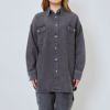 シーズンレスに活躍してくれるアイテム♪綿100%素材のBIGシルエットデニムシャツ。こなれ感がでるラウンドヘムデザイン。お尻まですっぽり隠れるゆったりシルエットなので、肩を抜いてニュアンスのある着こなしにも、さらっと羽織りにも◎1枚持っておくと万能に使えて頼れるアイテムです。