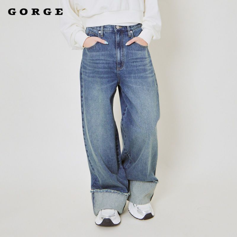 ロールアップデザインが足元にアクセントをプラス。すっきりとしたシルエットで、脚長効果が期待できるスタイリッシュな一本です。