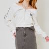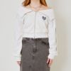 肩を落として抜け感のあるスタイルが楽しめるオフショル仕様。フロントのZIPがアクセントになり、スポーティーながらも女性らしい印象に仕上がります。適度なゆとりのあるシルエットで、こなれ感たっぷり◎