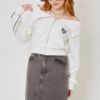 カジュアルなジャージ素材に、オフショルダーのデザインをプラスした旬顔トップス。ジップの開閉でアレンジが楽しめるので、気分やコーデに合わせて雰囲気を変えられるのがポイント♪