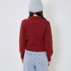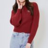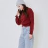 トップス ニット 襟付き 秋 冬 春 Wzip ケーブル編み 刺しゅう 無地 ボーダー 2516047