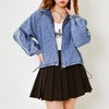 トレンド感満載!ラインデニムドローコードショート丈ブルゾン