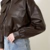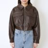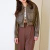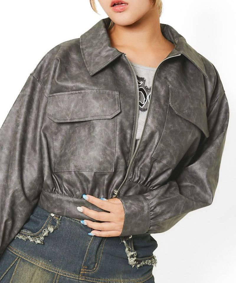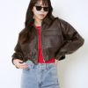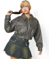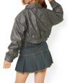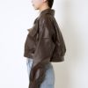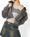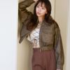 トレンド感のあるショート丈デザインに、クールな合皮素材を組み合わせたブルゾン。コンパクトなシルエットでスタイルアップも叶う一枚◎