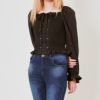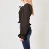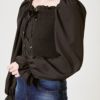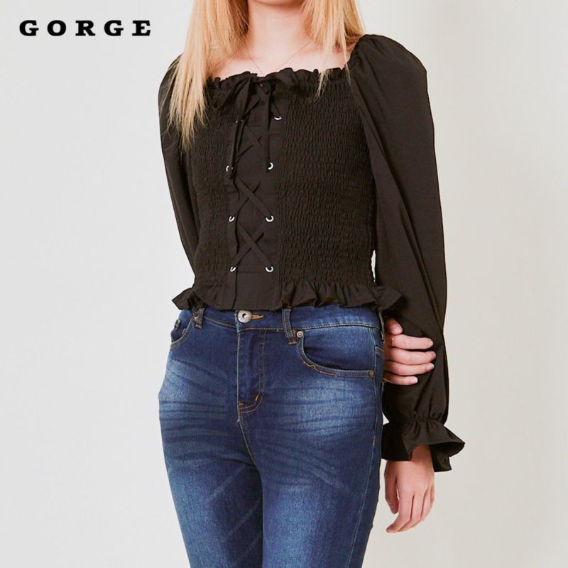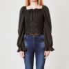 程よいフィット感と編み上げディテールが女性らしい印象を与えるシャーリングブラウス。クラシックな雰囲気でありながら、どこかモダンな要素も感じさせる一枚♪