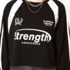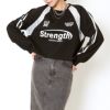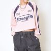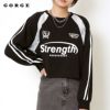 4. 《ライン切替×レースアクセント》レディース クロップド丈 長袖トップス ロゴ入り 春秋冬