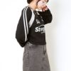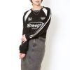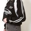 《ライン切替×レースアクセント》レディース クロップド丈 長袖トップス ロゴ入り 春秋冬
