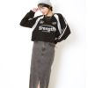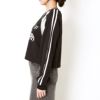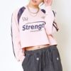 3. 《ライン切替×レースアクセント》レディース クロップド丈 長袖トップス ロゴ入り 春秋冬