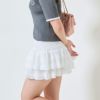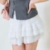 レース素材が使用されており、軽やかでエレガントな印象を与えます。特に、柔らかなアイボリーカラーが上品さを際立たせつつ、甘さのあるデザインに仕上がっているのが特徴です。