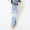 デニムというカジュアルな素材にレースという繊細でエレガントな要素が組み合わさることで、甘辛ミックスなスタイルが楽しめるのが特徴です◎