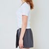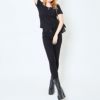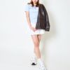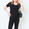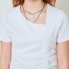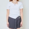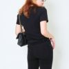 素材特有のリブの立体感が、カジュアルながらも上品な印象を与え、程よくフィットするシルエットが女性らしさを引き立てます。