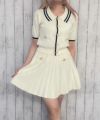 トップスは、パイピングラインがアクセントになった配色デザイン。フロントや袖口、ポケットに施された金ボタンが華やかさをプラスし、さりげない高級感を演出します。スカートはプリーツ仕様で動くたびに軽やかに揺れ、女性らしい印象に。上下で統一感がありながら、それぞれ単品でも活躍してくれる優秀アイテムです◎