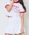 このTシャツは、カジュアルにもガーリーにも着こなせる万能アイテムです。例えば、デニムのショートパンツやワイドパンツと合わせると、夏らしく爽やかなコーデが完成します。