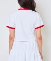 袖や襟の配色デザインがシンプルなTシャツに立体感をプラスし、カジュアルながらも洗練された印象を与えてくれ、タンタケ丈でハイウエストボトムスと相性が良く、スタイルアップ効果も期待できるアイテムです。♪