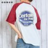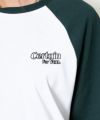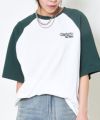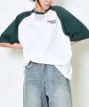 白地のボディに別の色のラグランスリーブが施されており、クラシックなベースボールTシャツのような雰囲気を醸し出しています◎