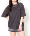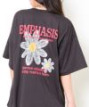 胸元の刺繍がさりげないアクセントになり、背面には発泡プリントで施された立体的な文字と、ラメが入ったお花のイラストが目を引くデザインになっています。