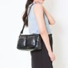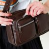フロント部分に二つのファスナーポケットが配置されており、小物を整理しやすい構造になっています。頻繁に取り出すアイテムを収納するのに便利で、機能性の高さがうかがえます。
