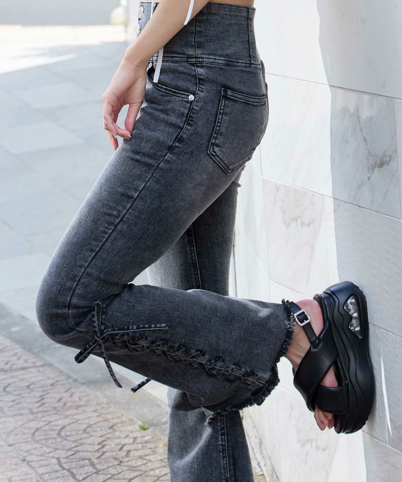 4. 《3つボタン×サイドリボン》フレアデニムパンツ