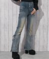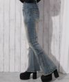 《3つボタン×サイドリボン》フレアデニムパンツ